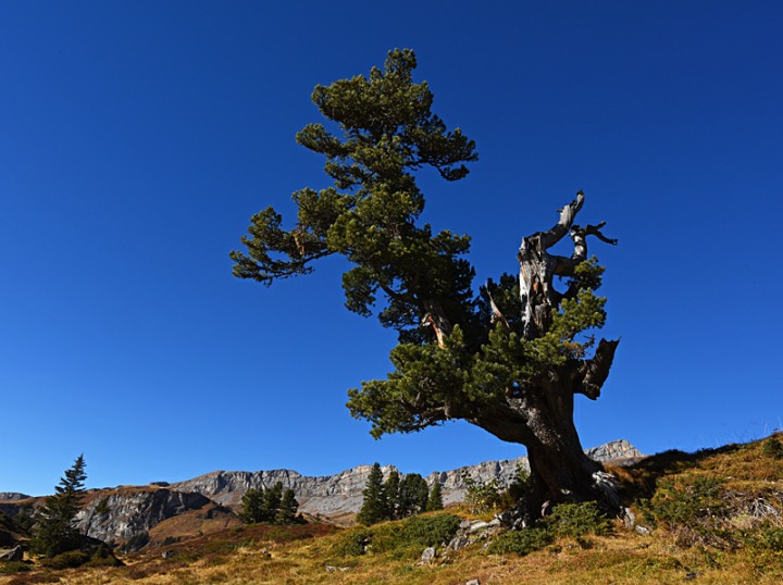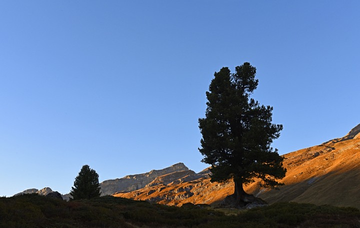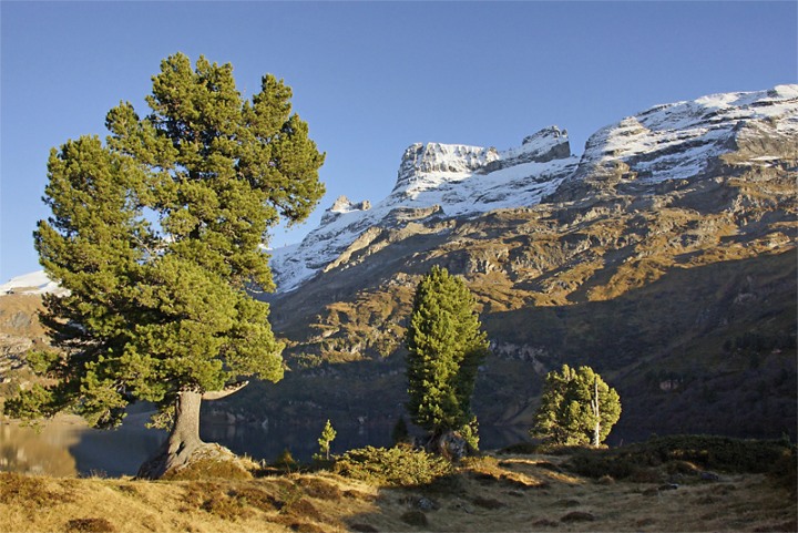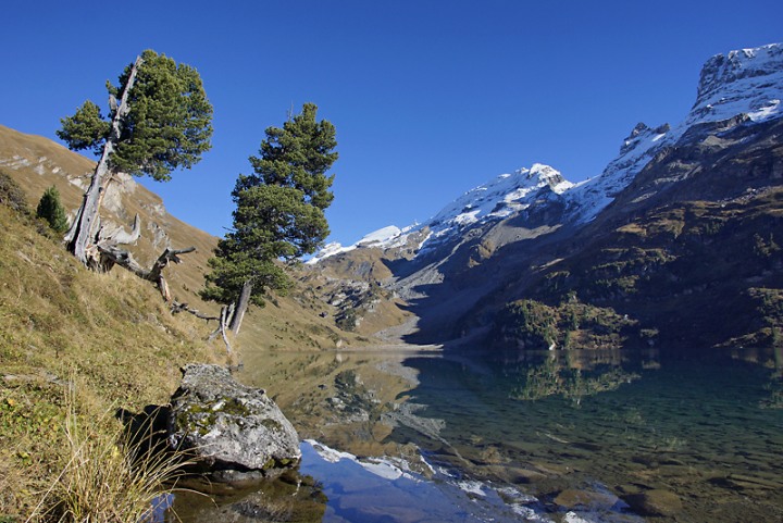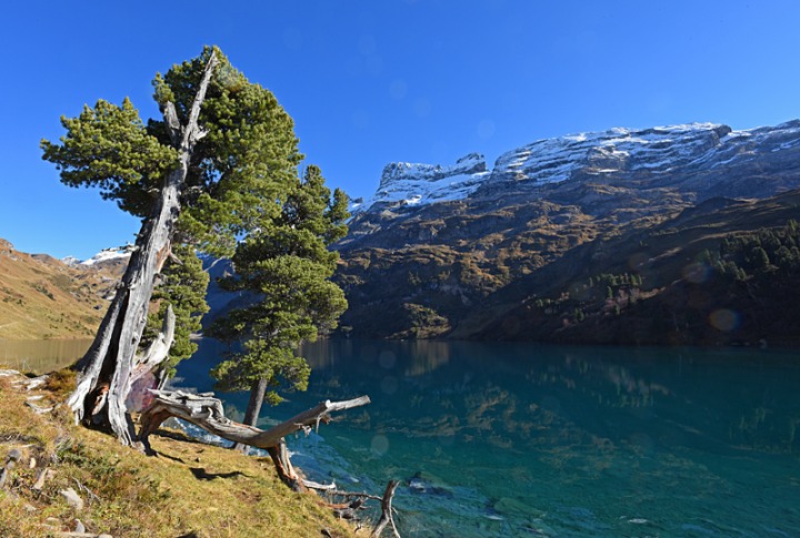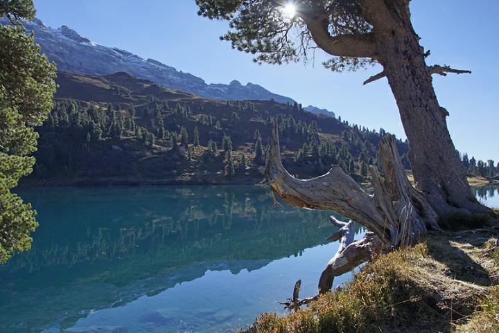 Eine Landschaft mit wilden und ganz stillen Wassern, einer artenreichen Vegetation mit uralten, vom rauen Wetter gezeichneten Arven und einem still daliegenden Bergsee: Eine Gegend wie geschaffen, um die Schönheit der schweizerischen Bergwelt in sich aufzusaugen und zu geniessen.